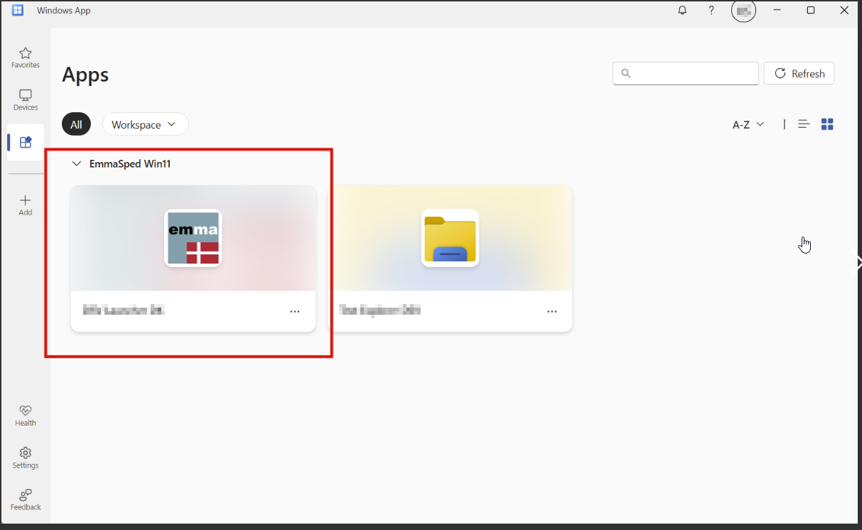 After you sign in, select the Apps tab to show your remote resources from Azure Virtual Desktop.