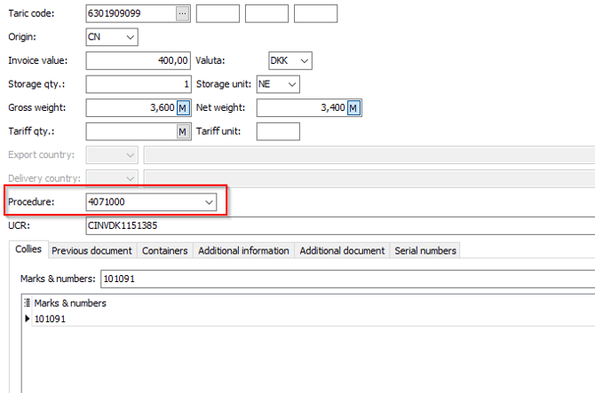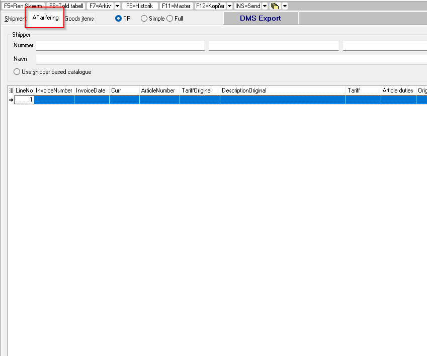 18. Now you will come over to "Told" where you need to sent data to DK Customs. Please add data if any data are missing here. You can send it to DK Customs by using "insert" on your keyboard