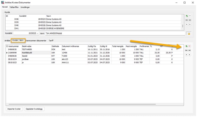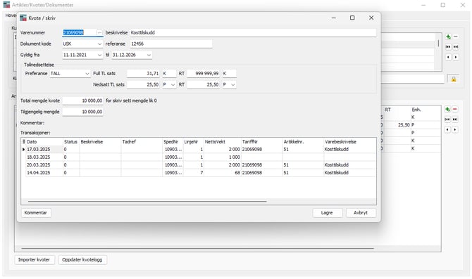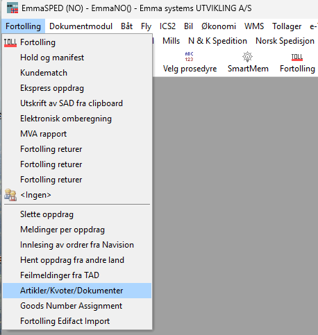 Open article register, quotas and documents by clicking Fortolling ➡️ Artikler/Kvoter/Dokumenter.