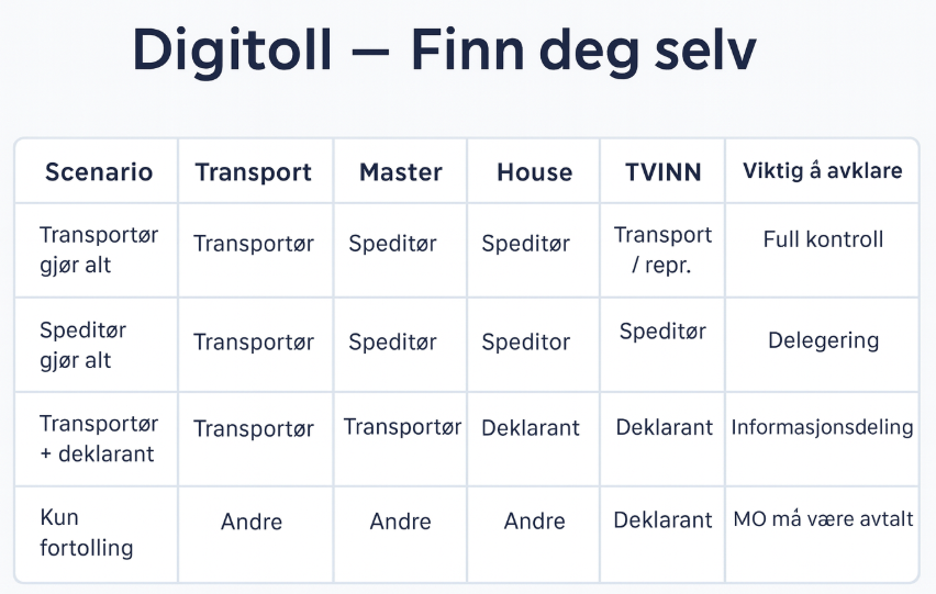 Transportør melder hele MO, speditør gjør kun deklarasjon