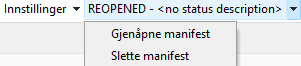 Du kan også gjenåpne eller slette manifestet dersom status er Success, Failure eller Warning, og det er behov for endringer eller kansellering.