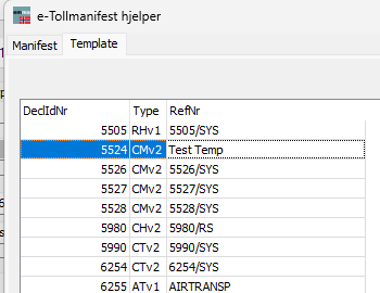 Man kan opprette faste maler for ulike typer transport og manifest.