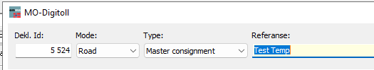 For å opprette en template velger du ønsket Transport Mode og Type manifest i Digitoll-modulen.
