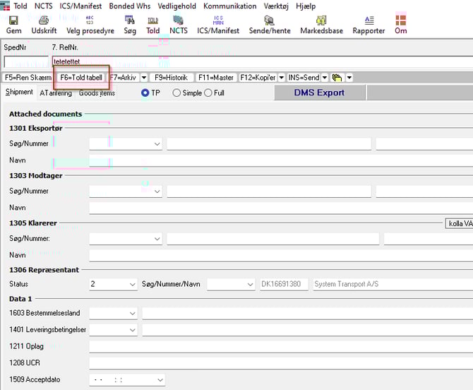 Now click on "Rettelse" then the declaration will be put in status 6, and then you can open it in "Told"