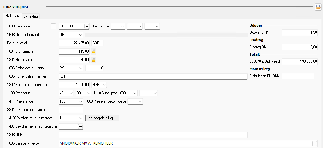 Then please add needed data in these fields - 1304 and 1305 must be the same. If you have questions about what is mandatory to be able to do a declaration, then please contact Danish Customs Help Desk.