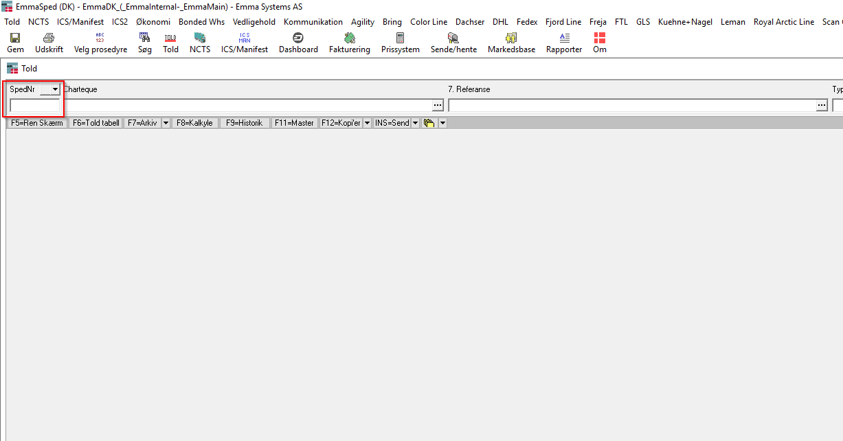 Spednr this is a consecutive serial number, this is only used in EmmaSped and not sent to Danish Customs, so you shouldn't add anything here.