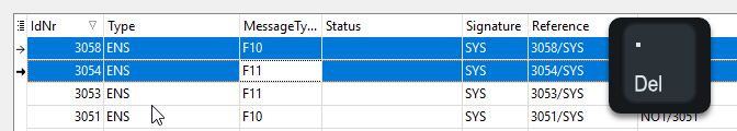 A list of all ENS and Arrival declarations that can be deleted is displayed.