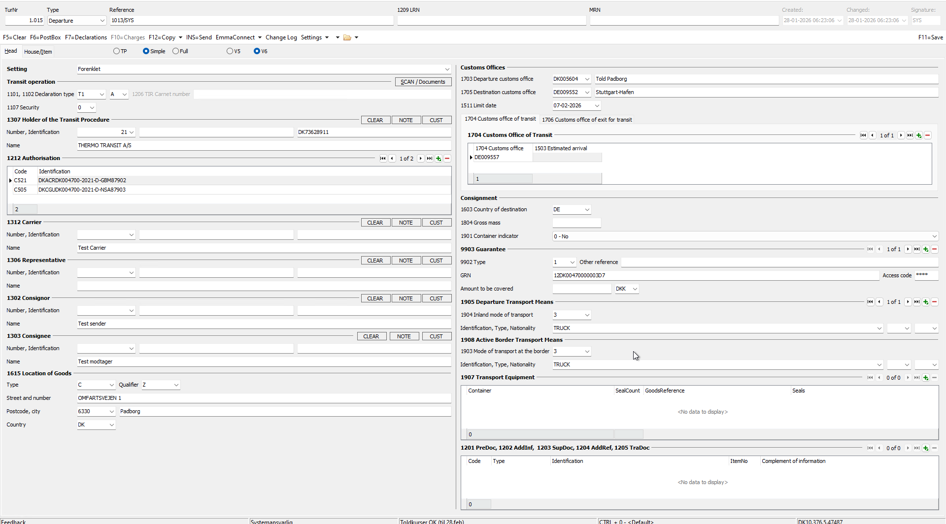 Please keep in mind that if you create a template based on a complete NCTS, the associated shipments will also be connected to the departure.