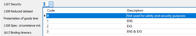 Codes 1 (ENS) and 3 (ENS & EXS) cannot be used for safety and security declarations