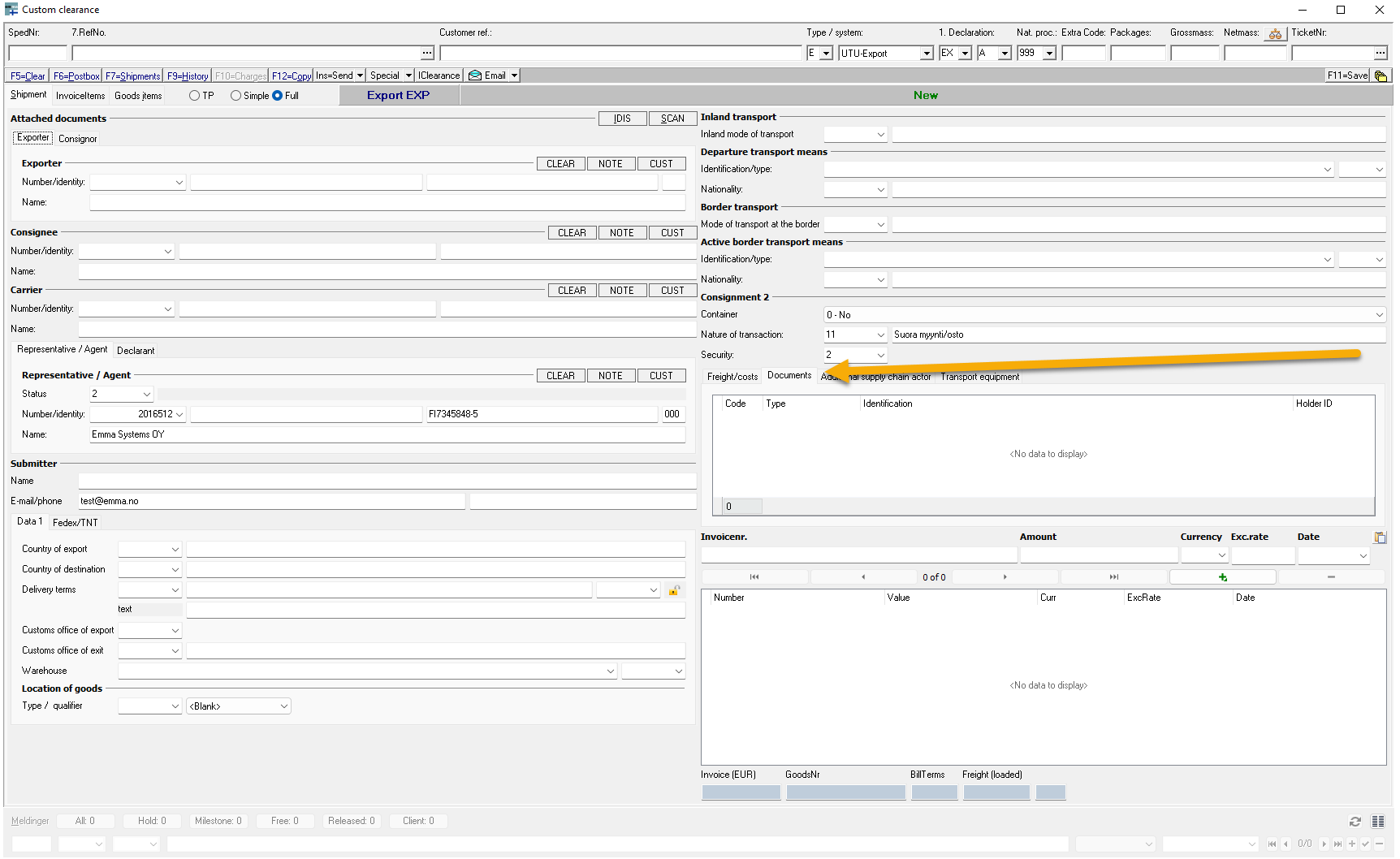 All documents that apply to the entire declaration (previous document, produced document, transport document, additional reference, additional information) will now be sent only at header level. They will no longer be repeated for each item.