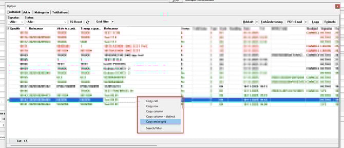 Exporting data from the Customs Table is simple and requires no additional tools.